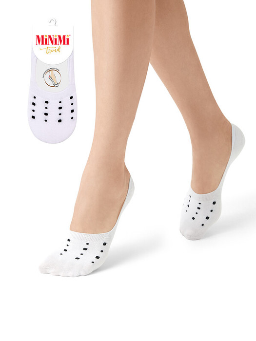 Женские подследники MiNiMi в горошек, укрепленные силиконом. Мягкий и дышащий хлопок в составе обладает высокой воздухопроницаемостью и отлично впитывает влагу, а эластан обеспечивает превосходное облегание. Благодаря специальным силиконовым фиксаторам, подследники плотно прилегают к пятке и не скатываются при ходьбе.