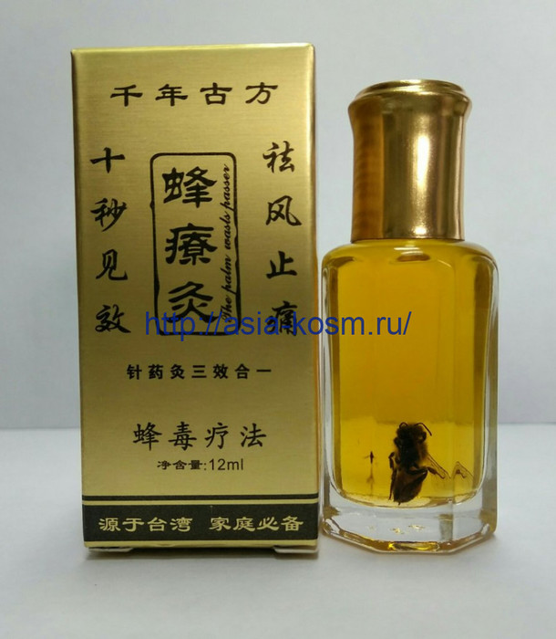 Состав: экстракт пчелиного яда, фрима тонкокистевая, мастиковое дерево, мирра, куркума, цветы тибетского шафрана, борнейская камфора, дудник даурский, корень дикорастущего пиона, аконит китайский, эфирное масло розмарина, лепестки соссюреи (горькуши) сушеницевидной, горький корень, эссенция ромашки, мята полевая, гледичия китайская.