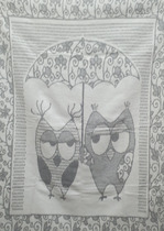Одеяло детское байковое Две совы с зонтиком (Серое)
