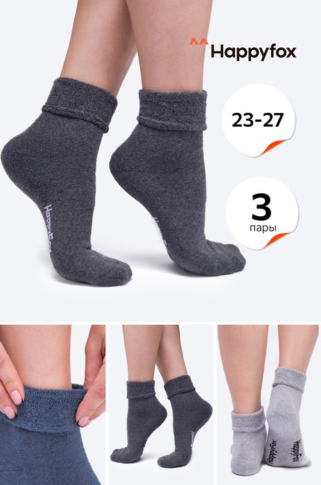Совместные покупки Каменск-Уральский Женская одежда Носки — Однотонные махровые носки 3 пары Happyfox