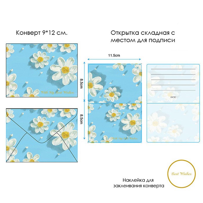 Размер конверта вместе с открыткой 9*12 см.