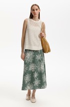 Романтичная женская летняя юбка с завязывающимся поясом из чистого льна, миди-юбка 927542 Хаки