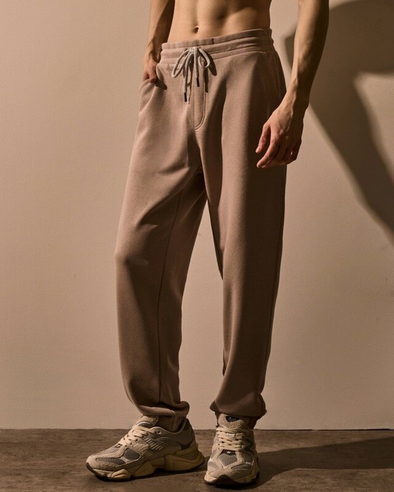 Мужские брюки, джоггеры с резинкой по низу брюк. Пояс из 2-х деталей, внутри резинка. По поясу отстрочка, петли,шнур. Боковые карманы с двойной отстрочкой, боковые швы отстрочены. Задний карман на правой задней половинке брюк.