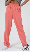 Брюки - бананы. Карманы в боковом шве. Пояс на резинке с двойной отстрочкой.