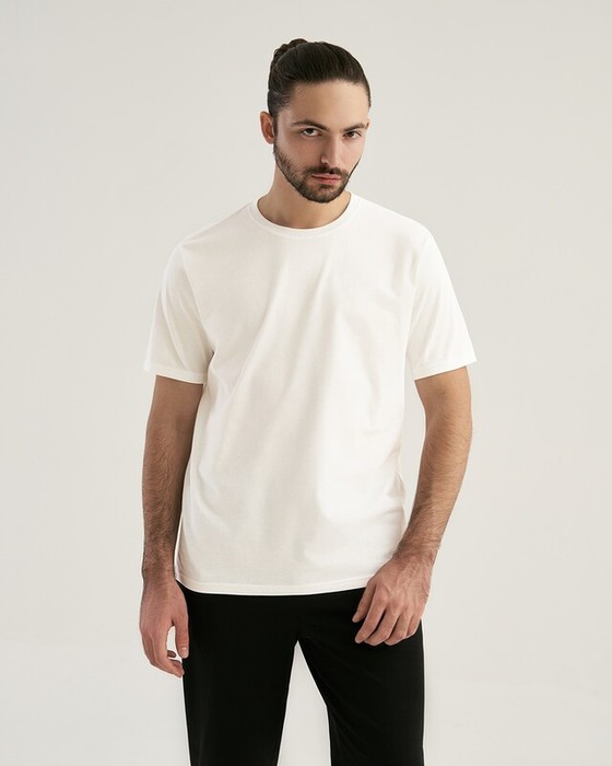 Классическая мужская футболка прямого силуэта. Горловина окантована рибаной.