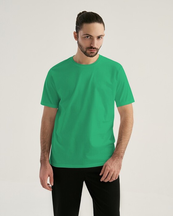 Классическая мужская футболка прямого силуэта. Горловина окантована рибаной.