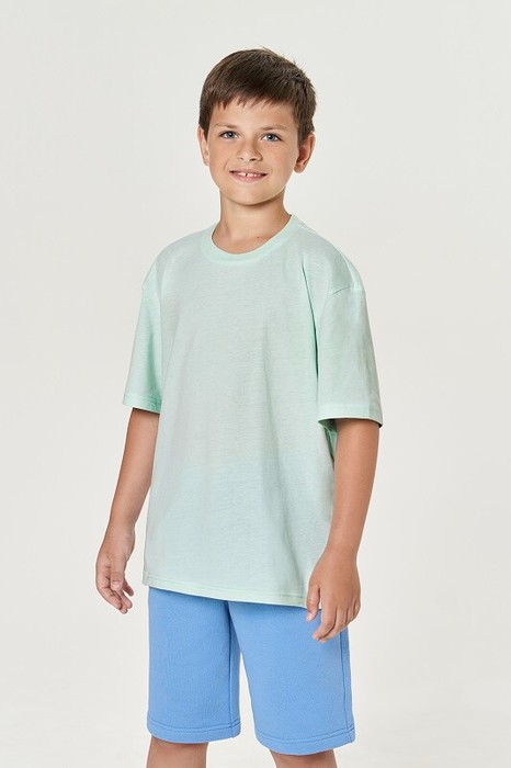 Футболка унисекс детская. Спущенное плечо, втачной рукав. Укрепление горловины спинки контрастной бейкой.