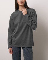 Boyfriend крой, круглый вырез. Втачной рукав. Горловина из рибаны. отстрочена по переду. Плечевые швы и шов горловины спинки укреплены бейкой из основной ткани.