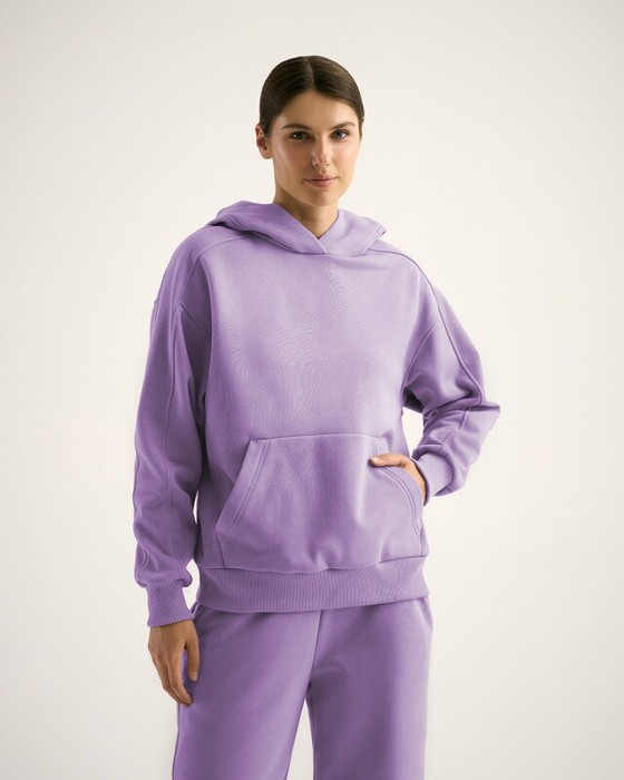 Худи свободного кроя с капюшоном, спущенное плечо, карман кенгуру.