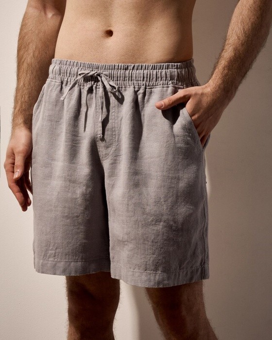 Шорты мужские из льна. Боковые и задние карманы. Пояс внутри с резинкой и шнурком