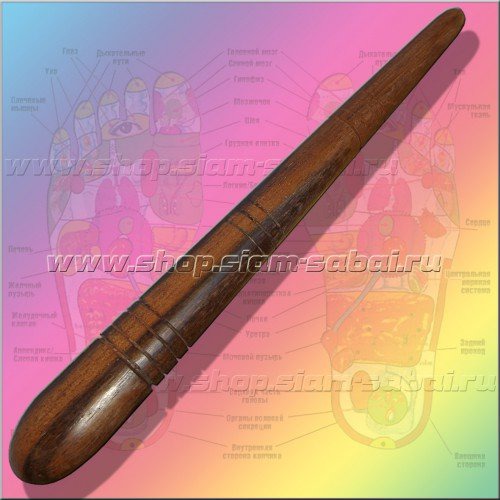 Палочка для тайского массажа ног Деревянная палочка из мангового дерева для традиционного тайского массажа стоп. Применение специальной палочки во время тайского фут массажа (Foot Massage) позволяет более эффективно воздействовать на акупунктурные точки на стопах, отвечающие за здоровье различных органов. Традиционнный тайский массаж ног оказывает мощный оздоровительный и лечебный эффект на весь организм. Палочка для традиционного тайского массажа стоп помогает более эффективно воздействовать на рефлекторные точки стопы, и достичь абсолютного расслабления и ощущения внутреннего комфорта благодаря особой стимуляции акупунктурных точек на стопах ног. Длина массажной палочки 15 см, матириал – манговое дерево, произведено в Таиланде.