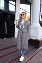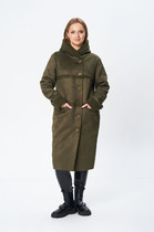 Женственные, элегантные модели актуальны в любом сезоне. Пальто отличает оригинальный дизайн, в основу которого положено контрастное сочетание различных материалов. Импровизированная жилетка с двубортной застежкой на пуговицах смотрится невероятно стильно, а кроме того визуально сужает силуэт, делая фигуру более стройной. Линия талии подчеркнута ремешком, для непогоды предусмотрен капюшон.