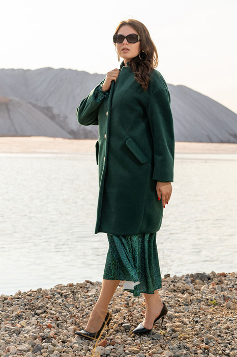 Пальто женское современного покроя, на подкладке, с центральной бортовой застёжкой на три петли и металлические пуговицы, с пиджачным воротником. На полочках обработаны карманы с клаанами и фигурные подрезы. Спинка со средним швом и фигурными подрезами. пальто демисезонное свободного покроя. очень совремееное и комфортное для модниц.