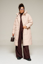 Женственное и элегантное утепленное пальто из комбинированной ткани. Полуприлегающий силуэт создан рельефами из горловины на передней части и спинке. Центральная застежка на молнию, закрытую планкой с кнопками. Карманы в рельефном шве на потайных молниях. Воротник-стойка. Рукав втачной двухшовный, длина 64 см, низ рукава можно загибать, регулируя длину. Длина изделия по спинке 85 см. Утеплитель холкон (см.описание), плотность 200, в рукавах 150.