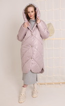 Утепленное стеганое пальто полуприлегающего силуэта-настоящий подарок для любителей классики. Изделие отрезное под линией груди с центральной застежкой на потайные кнопки. По низу рукава и по внутренней части воротника-стойки отделочная ткань светло-серого цвета. Низ рукава со шлицей на потайные кнопки. Утеплитель холкон (см.описание), плотность 100.