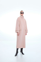 Еще один яркий тренд весны-пальто из плащевой ткани приталенного силуэта с деталями из кожи. Рукав втачной, воротник «Апаш» из искусственного меха. Мех итальянский, близко к натуральному, очень приятный на ощупь. Центральная застежка-молния, закрытая планкой на кнопках. Утеплитель холкон (см.описание) (см.описание) (см.описание) (см.описание), плотность 200. Длина изделия по спинке 74 см, длина рукава 65 см.