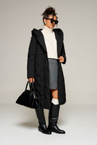 Весеннее пальто приталенного силуэта. Утеплитель холкон (см.описание), плотность 200, центральная застежка молния, закрытая планкой на кнопках. Вертикальная планка зрительно удлиняет фигуру. На груди декоративная пряжка, капюшон отстегивается, длина изделия 92 см, длина рукава 64 см.
