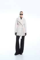 Стеганое женское пальто с капюшоном отличается легкостью и практичностью. Значительное количество равномерных швов позволяет не только равномерно распределить утеплитель, но и уменьшить его пухлость.Пальто позволит создать прекрасный утонченный женственный образ, в отличие от других пальто из толстой ткани. Центральная застежка на молнию, карманы-листочки. В комплекте съемный завязывающийся пояс. Капюшон отстегивается. Утеплитель холкон (см.описание), плотность 100.