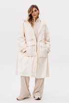 Необыкновенное весеннее двубортное пальто от бренда D'imma fashion studio коллекции весна/лето 2016, выполненное из плотного хлопкового волокна с ажурным рельефным рисунком, на шелковистой подкладке. Пальто чуть приталенного кроя, с отложным воротником, рукавом три четверти, боковыми карманами на молнии, спереди застегивается на золотистые пуговицы.