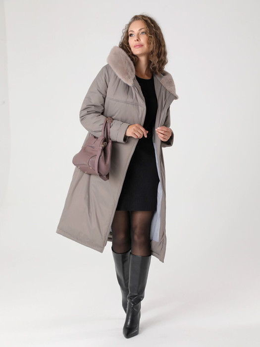 Длинное зимнее пальто прямого силуэта с втачными рукавами и ассиметричной застежкой на двухзамковую молнию, которая расстегиванием снизу, позволяет регулировать ширину шага при подъеме и ходьбе. Капюшон оформлен меховой опушкой, не отстегивается. Модный искусственный мех  хорошо стирается и не меняет свой красивый внешний вид после высыхания. Комфортности добавляют удобно расположенные  карманы с молнией. Есть внутренний кармашек, тоже на молнии.  Модель этого пальто рекомендована женщинам и девушкам любой возрастной категории. Оно универсально  - его можно сочетать как с платьями и юбками, так и с джинсами и брюками.  Плащевая ткань имеет водоотталкивающую пропитку,  которая выдержит небольшой  дождь или снег. Хорошо зарекомендовавший себя современный утеплитель Холлофайбер, плотностью 300 г/м, защитит от холода и  ветра. Подкладка в изделии - в мелкую полоску. Выбирайте один из актуальных в этом сезоне цветов, и Ваша зима будет не только комфортной, но и стильной!