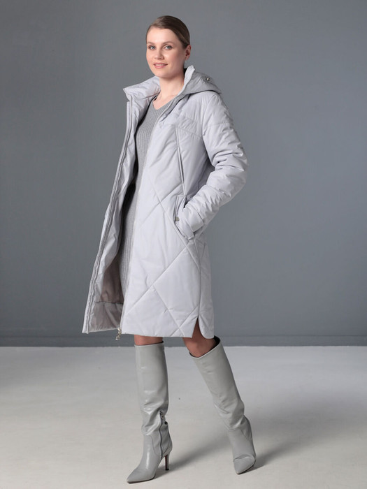 Демисезонное пальто средней длины прямого  силуэта с возможностью приталивания по спинке с помощью кулиски. Застежка - на двухзамковую молнию, которую можно расстегнуть как сверху, так и снизу. Модель такого пальто подходит для девушек и женщин разной возрастной категории. Декоративные строчки красиво подчеркивают и "вытягивают" силуэт. Длина втачного рукава регулируется отворотом. Воротник - уютная стойка, переходящая в капюшон.  Удобно расположенные карманы застегиваются на молнию. Есть внутренний кармашек, тоже на молнии. Плащевая ткань, из которой выполнено изделие, имеет водоотталкивающую пропитку, выдерживающую небольшой  дождь, снег и ветер. Хорошо зарекомендовавший себя утеплитель " Холлофайбер", плотностью 150гр/м, защитит от холода. Подкладка в изделии выполнена из ткани в мелкую полоску.