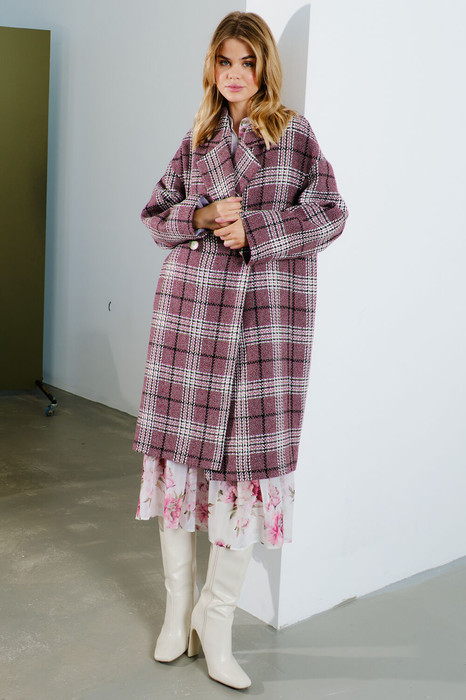 — Пальто Lokka 1568 бордовый+черный+белый/клетка
