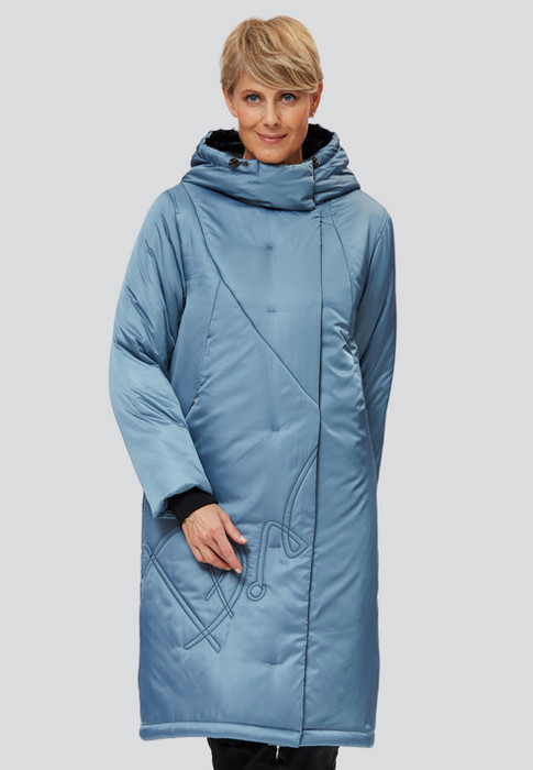 Свободное утепленное пальто Мальвено с оригинальной декоративной вышивкой на полочке, от российского производителя D’imma Fashion Studio. Застежка на молнию и кнопки. Широкий размерный ряд, в наличии большие размеры. Капюшон затягивается на кулиску и не отстегивается.