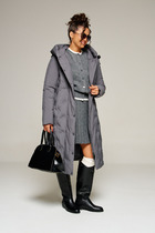 310 BLACK/WHITE Пальто зимнее стеганое женское (200 гр. холлофайбер, натуральная