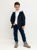 Детская зимняя парка средней длины с капюшоном. Модель выполнена из ткани c мембранным покрытием и фольгированной подкладки, что позволяет более эффективнее сохранять естественное тепло. Застежка на кнопках и молнии.