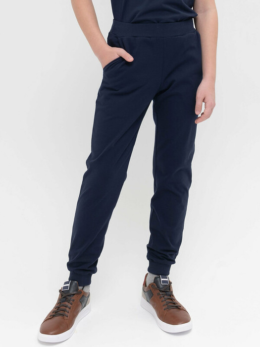 Спортивные брюки из плотного трикотажа для мальчика. Натуральный хлопок в составе позволяет телу дышать, ткань приятна на ощупь, не растягивается и почти не мнется. Пояс и манжеты из рибаны. Не давит, но хорошо садится по фигуре. Объем по талии регулируется внутренним шнуром — брюки не давят и не сползают. Можно брать на вырост. Боковые карманы для хранения самых нужных мелочей. Удобны для повседневной носки и занятий спортом.