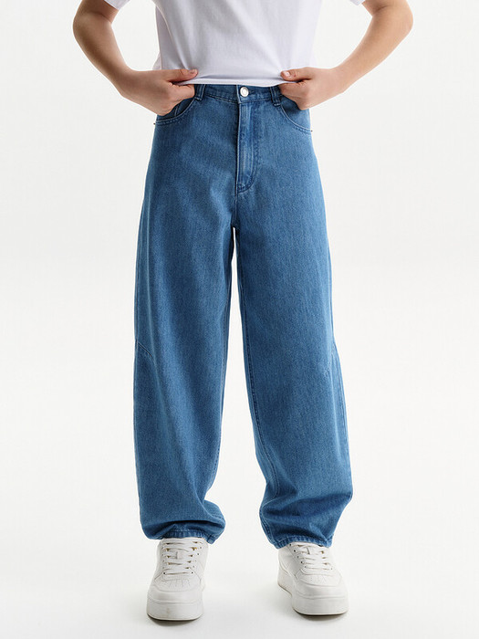 Джинсы Багги из плотного денима.Пояс застежкой на пуговицу и петлю.Джинсы с функциональным гульфиком,