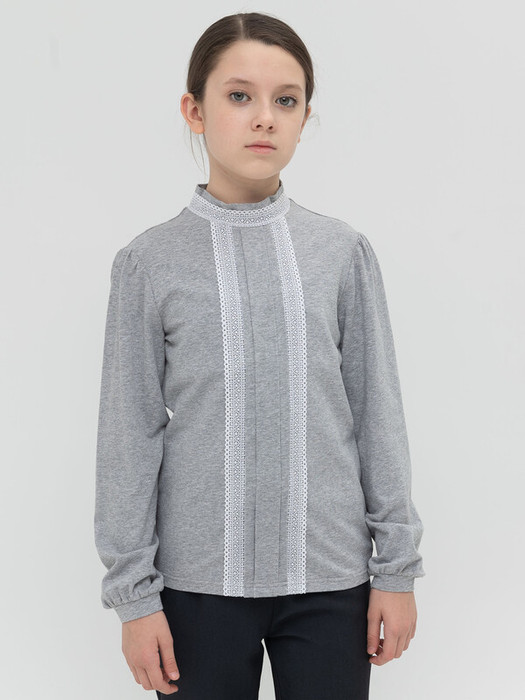 Кружево по бокам центральной складки спереди и по воротнику, а также лёгкая сборка рукава вносят немного романтики в классический стиль блузки.