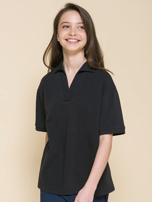 Футболка свободного силуэта со спущенным плечом для девочки. В составе ткани преобладает хлопок — изделие мягкое, дышащее и приятное на ощупь. Эластан помогает сохранять форму даже после частых стирок. Мягкая V-образная горловина дополнена отложным воротником без застёжки – удобно надевать и снимать. Благодаря свободному силуэту эта модель подходит девочкам с разными типами фигуры. Футболка не станет малой в течение долгого времени, даже если ребёнок заметно подрастёт. Изделие лаконичного дизайна легко сочетается как с брюками, так и с юбкой, сарафаном. Отличный выбор школьной одежды для девочек.