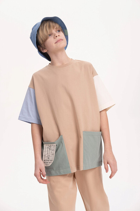 Футболка для мальчика оверсайз - это идеальный выбор для активного ребенка. По низу большие накладные карманы. Вырез горловины обработан эластичной тканью — она прекрасно держит форму, не растягивается, при этом ребёнку удобно надевать и снимать футболку. На кармане декоративная нашивка с принтом и надписью. Перевод надписи "triangulo de las Bermudas" - Бермудский треугольник. Спортивная футболка подходит как для подростков так и для малышей в детский сад. Подходит для любого времени года.
