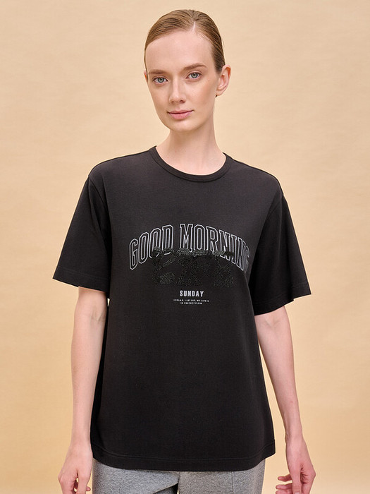 Женская футболка с принтом среднего объёма с коротким прямым рукавом. Вырез горловины обработан окантовкой. Изделие неприхотливо в уходе. Хлопковая футболка женская украшена принтом + актуальной аппликацией из мелких матовых страз. Шрифты в трендовых университском и футуристическом стилях. Надписи переводятся: «доброе утро, жизнь», «воскресенье», «я расслабляюсь, я отпускаю всё, моя жизнь течёт своим чередом». Принт и аппликация устойчивые, прочные, хорошо переносят многочисленные стирки. В составе ткани преобладает высококачественный хлопок — майка мягкая, воздухопроницаемая, приятная на ощупь. Футболка с надписями выполнена в трендовых и при этом универсальных цветах, которые отлично сочетаются с различными брюками, шортами. Футболки с принтом женские подходят также девушкам, девочкам-подросткам. Хлопковая футболка идеальна для любого времени года, её можно носить как летом, так и в холодное время года в качестве среднего слоя одежды, а также на спорт. Помните о правильном уходе за изделием: рекомендуется стирать при температуре не выше 30 °C, без предварительного замачивания, с изнанки. Это поможет сохранить качество и цвет футболки на длительное время.