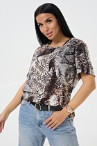 Футболка женская укороченная приталенная с коротким рукавом изготовлена из мягкого 100% хлопка «пуантель» с мельчайшим геометрическим узором, напоминающим кружево. Джемпер укороченный женский облегающего силуэта с округлым вырезом горловины. Футболка однотонная женская лаконичного дизайна, без принта. Футболки короткие идеально подходят для расслабленных домашних образов. Модель представлена в универсальных цветах, её легко комбинировать с различными брюками, шортами и юбками. Футболка ажурная женская хорошо сочетается с брюками в таком же стиле, в ассортименте представлены брюки в тон. Помните о правильном уходе за изделием: рекомендуется стирать при температуре не выше 30 °C, без предварительного замачивания, с изнанки. Это поможет сохранить качество и цвет футболки на длительное время.