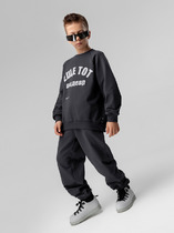Комплект для девочек футболка и бриджи. Футболка актуального оверсайз силуэта. Спущенная линия плеча, отворот манжета из основной ткани. Стойкий эластичный принт в стиле граффити. Перевод Тот, кто создает правила. Тот, кто нарушает правила. Бриджи расслабленной формы с дополнительной регулировкой объема шнуром и манжетами из основной ткани.