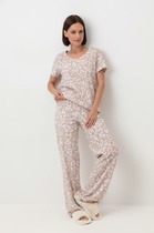 Женский костюм – майка и шорты из эластичной ткани в рубчик. Ткань отлично растягивается и быстро возвращается в исходную форму, приятна на ощупь и проста в уходе. Майка на широких бретелях свободного кроя с увеличенными проймами – стильная, спортивная, уютная. Обтягивающие короткие шорты на мягкой резинке из основной ткани – отлично сидят, акцентируют внимание на ногах. В костюме удобно спать, заниматься повседневными делами и просто быть собой.