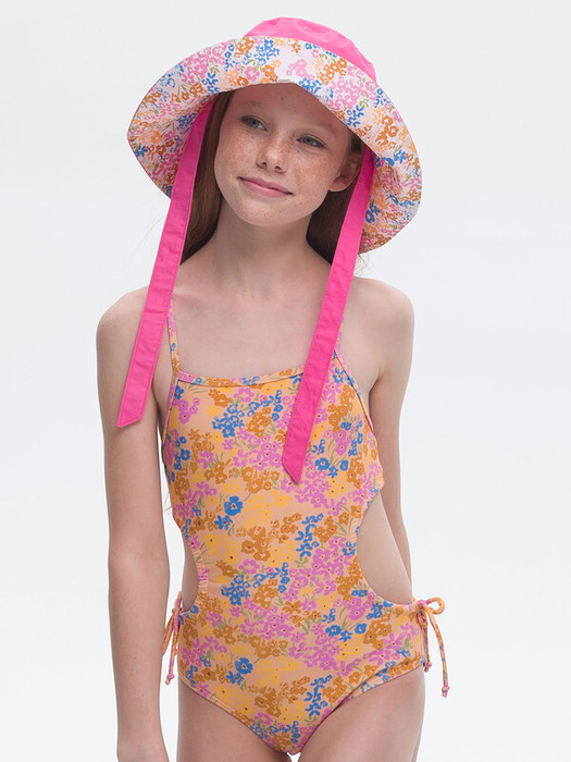 Купальник слитный для девочки. Мягкая эластичная ткань разработана специально для купальных костюмов и идеально садится по фигуре.  Быстро сохнет и практически нет выгорания на солнце. По бокам купальника круглые отверстия, которые можно затянуть шнуром из основной ткани, что позволяет регулировать купальник по росту девочки. Лямки с регулировкой по длине. Подходит для пляжа, моря, бассейна.