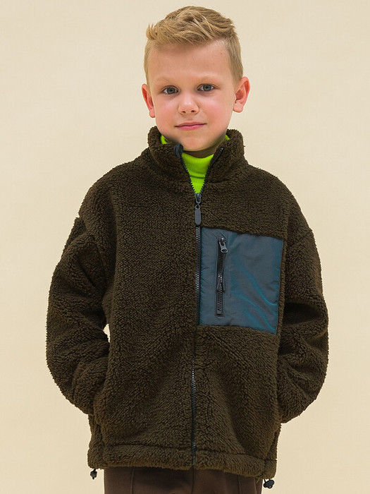 Флисовая куртка на мальчика. Объёмный жакет со спущенным плечом подарит ребёнку комфорт и свободу движения. Мягкая куртка выполнена из модного  бербер-флиса (фактура «барашка»). Застёжка на центральную молнию спереди. Тканевый стоппер защищает подбородок от зажима молнией. На груди накладной карман из курточной ткани цвета «зеленый хамелеон». Сочетание материалов разных фактур актуально в этом сезоне. На кармане молния с крупным пуллером — ребёнку просто и удобно застёгивать и расстёгивать его. По низу предусмотрена утяжка для регулировки ширины изделия. Толстовка с воротником-стойкой, который защищает шею от холода и ветра. Изделие лаконичного дизайна, без принта. Плюшевая толстовка неприхотлива в уходе. Флис тёплый, лёгкий, мягкий, просто стирается и быстро сохнет, не выгорает и не скатывается, одежда из него надолго сохраняет великолепную форму. Куртка выполнена в трендовом коричневом цвете, декоративные детали из курточной ткани — в чёрном. В линейке представлены следующие размеры: 1 (86); 2 (92); 3 (98); 4 (104); 5 (110); 6 (116); 7 (122); 8 (128); 9 (134); 10 (140); 11 (146). Толстовка подходит малышам, мальчикам дошкольного и младшего школьного возраста, а также подросткам. Её можно носить в детский сад и школу, на прогулки и отдых. Отличная куртка на осень, весну и прохладное лето, зимой её можно надевать под верхнюю одежду. Легко сочетается с различыми брюками. Это замечательный подарок сыну, внуку, племяннику или брату на День рождения и любой другой праздник.