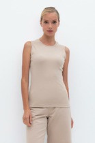 Женский бельевой топ. Изготовлен по бесшовной технологии с минимумом швов. Боковые плоские раздвижные швы, края горловины, проймы и низа изделия подогнуты и приклеены. Топ максимально невидим под одеждой, не натирает, комфортно сидит на теле. Съемные формованные чашки поддерживают грудь и создают красивый объем. Продуманное расположение регулируемых бретелей по спинке делают топ комфортным в носке, лямки не спадают с плеч. Этот топ станет идеальным функциональным нижнем бельем на каждый день.