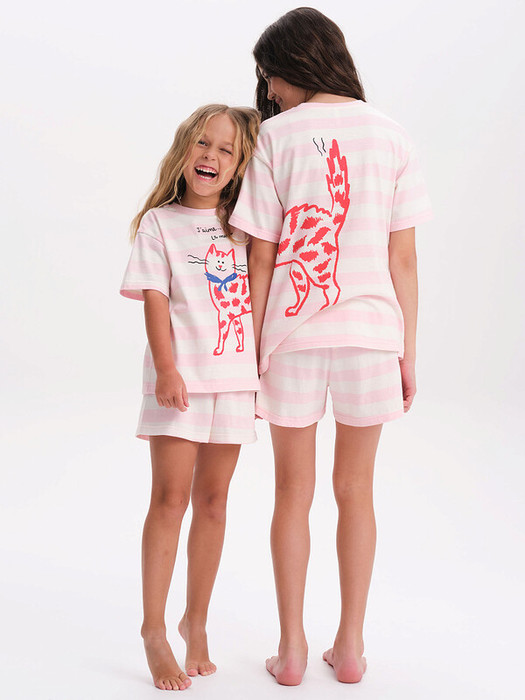 Стильная и уютная пижама актуального цвета для девочки. В составе ткани 100% хлопка — идеально для детской одежды! Модель приятна на ощупь, прекрасно пропускает воздух, позволяя коже ребёнка дышать. При этом в пижаме из хлопка ребёнку будет уютно, даже если он сбросит одеяло. Всё это обеспечивает комфортный и качественный сон. Свободная футболка и комфортные шорты, плечо немного спущено, рукава широкие — в пижаме очень удобно спать. Широкая и мягкая резинка в поясе не перекручивается и не давит. Отделка горловины из эластичной рибаны — она не растягивается, ребёнку удобно надевать и снимать пижаму.  Футболку украшает позитивный принт в виде кошечки. Надпись переводятся: "люблю море". Домашний комплект — замечательный подарок дочке, внучке, сестре на любой праздник. Выбирайте нужный размер по таблице размеров на фото. Цвет товара на экране вашего устройства может отличаться от цвета изделия вживую.