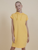 Детское платье худи длиной выше колена для девочки. Платье в спортивном стиле А-силуэта подойдёт для любого типа фигуры. Это идеальный вариант для летнего отдыха — благодаря капюшону нет необходимости в панаме, голову ребёнка не напечёт солнцем. Капюшон двухшовный, красиво и анатомически правильно садится по голове. Есть возможность регулировки капюшона шнуром. Платье умеренного объёма со спущенным плечом подарит ребёнку комфорт и свободу движения. Проймы с широкими притачными манжетами, они отлично держат форму, платье выглядит аккуратно и стильно. В боковых швах имеются карманы  — удобно пользоваться. Платье однотонное, без принта. За ним легко ухаживать. В составе ткани 100% высококачественного хлопка — платье мягкое и дышащее. Изделие выполнено в актуальном жёлтом цвете. В линейке представлены следующие размеры: 1 (86); 2 (92); 3 (98); 4 (104); 5 (110); 6 (116); 7 (122); 8 (128); 9 (134); 10 (140); 11 (146). Платье худи укороченное идеально для девочек дошкольного и младшего школьного возраста, а также девочек-подростков. Подходит для детского сада, прогулок, отдыха, дома. Платье можно носить летом, а также весной и осенью (демисезон), зимой в качестве домашней одежды. Модное платье — стильный и практичный подарок дочери, внучке или сестре на любой праздник. Выбирайте нужный размер по таблице размеров на фото. Цвет товара на экране вашего устройства может отличаться от цвета изделия вживую.