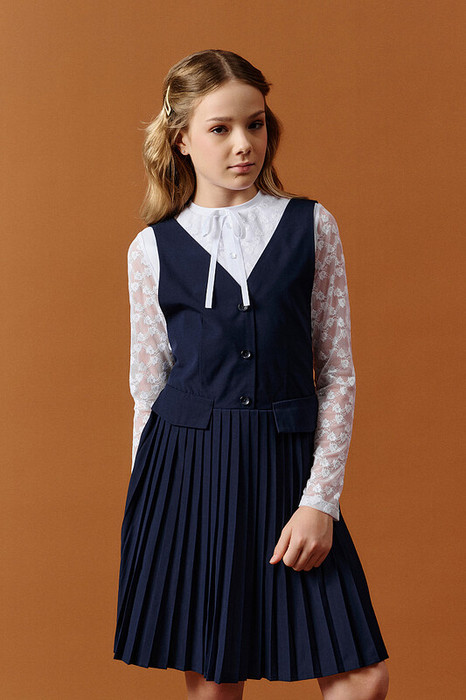 Сшит из смесовой ткани — практичный материал, который не мнётся, дышит и легко стирается. Сарафан прослужит долго, сохраняя аккуратный вид как в школе, так и в повседневной жизни.
