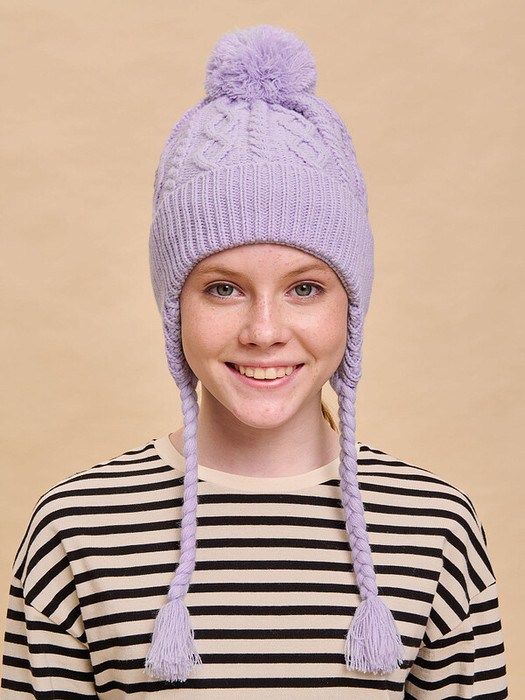 Стильная и уютная детская шапка с помпоном. Нейтральный дизайн делает её подходящей и мальчикам, и девочкам. Модель с отворотом и цельновывязаными функциональными ушками с завязками выполнена из 100% акрила. Материал тёплый, приятный на ощупь и очень комфортный. Шапку легко стирать — она не растягивается, не мнётся и сохраняет первозданный вид надолго. Отличные терморегулирующие свойства акрила позволяют носить изделие в холодную погоду. Внутри флисовая подкладка. Она мягкая и обеспечивает дополнительную защиту от холода. Модель хорошо садится по голове ребёнка, плотно прилегает, не сползает. Основная вязка шапки — модные текстурные “косы”. Цельновывязаные ушки по бокам прикрывают уши ребёнка от холода и ветра. Декоративные завязки выполнены в виде косичек с кисточками — оригинально и стильно. Помпон выполнен из ниток в тон изделия. Эта модель станет отличным подарком для маленьких модников!