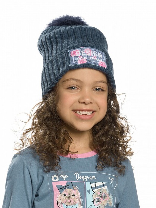 Шапка для девочек. Вязаная шапка на подкладе из флиса, с отворотом. На отвороте нашивка с надписью "Дизайн твоей мечты".