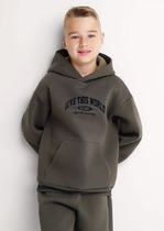 Худи для девочек и мальчиков из футера с начесом свободного силуэта с длинным рукавом, без карманов. Это однотонная базовая вещь для детского гардероба. Красивая и яркая одежда для ребенка, практичная и удобная при надевании для родителей. Двухшовный капюшон с подкладом из основного материала аккуратно ложится по голове и убережет от холода. Манжеты рукавов и низа изделия из основной ткани. Не утягивают, но придают силуэт. Деликатная изюминка модели - силиконовая буква P из логотипа бренда на правом рукаве.