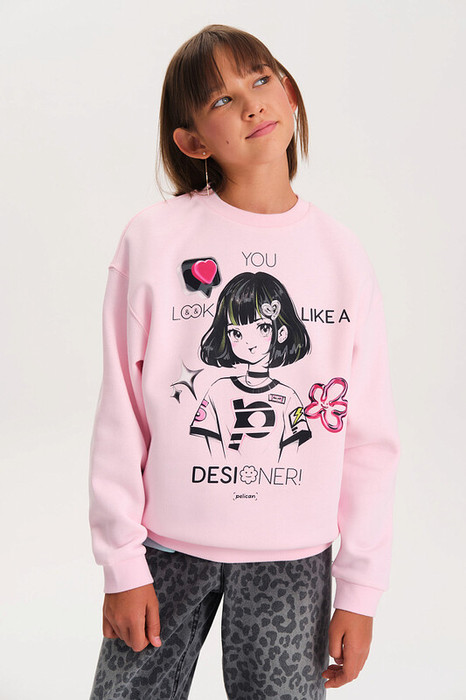 Толстовка с резинкой по низу Pelican - это стильное и удобное решение для повседневной носки, занятий спортом или создания модного образа в стиле кэжуал. Модель выполнена из футера с начесом, что обеспечивает мягкость, воздухопроницаемость и комфорт в носке. Джемпер украшен ярким принтом, делая его особенно привлекательным для девочек любого возраста. Свободный крой модели придает современный и практичный вид.Свитшот Pelican - это универсальный вариант для осенних прогулок, отдыха или просто для создания модного образа. Качественный материал и дышащая структура делают его идеальным выбором для активного образа жизни. Перевод принта: Ты выглядишь как дизайнер.