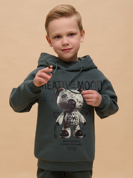 Толстовка детская из футера с начёсом для мальчика. Худи трендового оверсайз-силуэта со спущенным плечом подарит ребёнку комфорт и не будет стеснять его движений. Толстовка с капюшоном защитит от холода и ветра. Модель дополнена манжетами из эластичной рибаны по низу и рукавам. Рибана не растягивается и надолго сохраняет отличный внешний вид. Изделие неприхотливо в уходе. Толстовка на мальчика выполнена из ткани с высоким содержанием хлопка — модель мягкая, воздухопроницаемая и гипоаллергенная. Благодаря полиэстеру худи износостойкое, сохраняет форму даже после множества стирок. Изделие выполнено в универсальной расцветке, без проблем сочетается с любыми брюками, джинсами. Толстовка по переду декорирована принтом в актуальном готическом стиле, надписи переводятся: «креативное настроение», «нарушать правила», «расширяйте границы своих возможностей каждый день с 7 утра до 11 вечера», «не в настроении, не токсичный, будь радостным». Принты эластичные и устойчивые, не боятся частых стирок. Отличное худи оверсайз для мальчиков дошкольного и младшего школьного возраста, а также подростков. Джемпер подходит для детского сада, прогулок, отдыха, дома. Худи с капюшоном для мальчика подходят для круглогодичной носки. Помните о правильном уходе за изделием: рекомендуется стирать при температуре не выше 30 °C, без предварительного замачивания, с изнанки. Это поможет сохранить качество и цвет толстовки на длительное время.