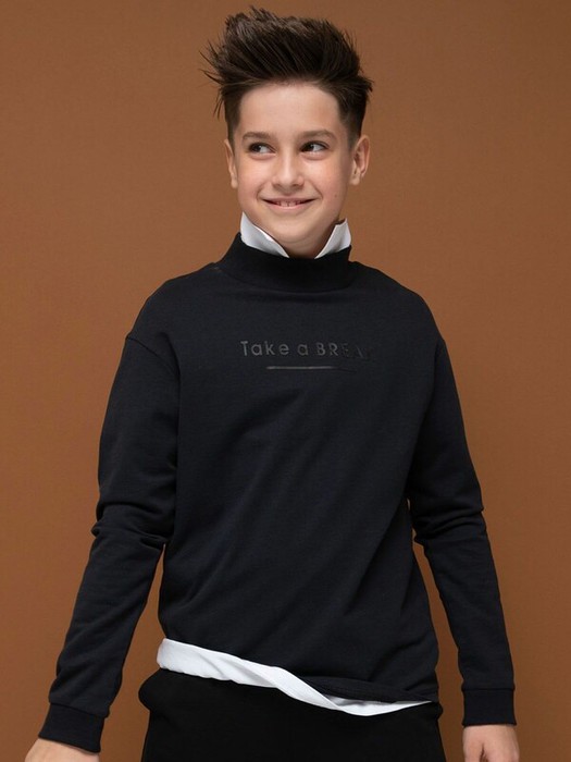 Школьный свитшот для мальчика из хлопкового футера. Материал почти не мнётся, не электризуется, отлично впитывает влагу. Мягкий и простой в уходе.